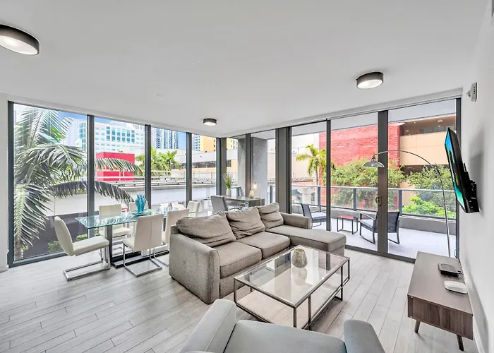 Tijdens een verblijf in Amazing 3Beds 3Baths Corner Unit Downtown Miami Appartement kunnen gasten zich ontspannen op een terras 6 km verwijderd van het Congrescentrum van Miami Beach.